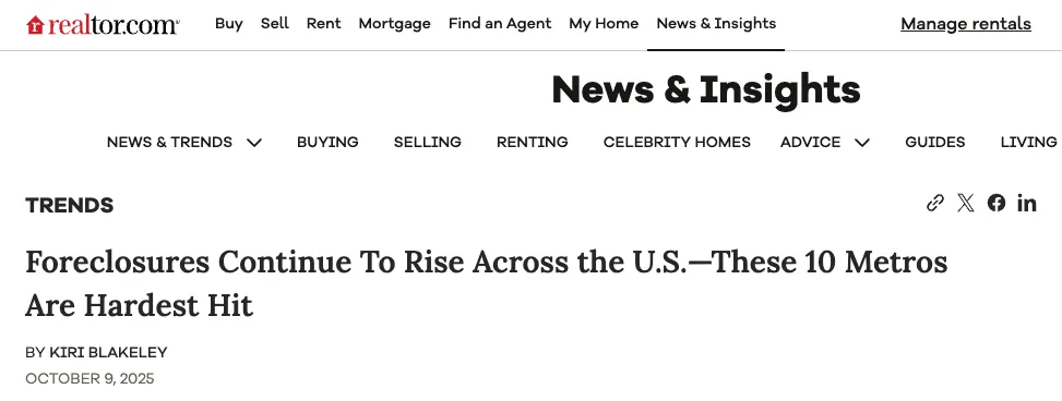 • The rise isn’t yet at crisis levels (like 2008–2010), but it’s noticeably higher than the lows seen during the pandemic years when foreclosure moratoriums and loan forbearance programs were in place.